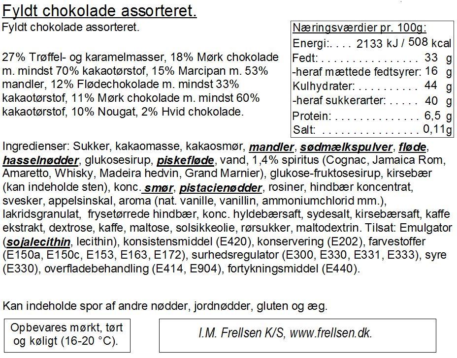 Gaveæske med 12 stykker fyldt chokolade. Æsken indeholder et varieret udvalg af fyldt chokolade.