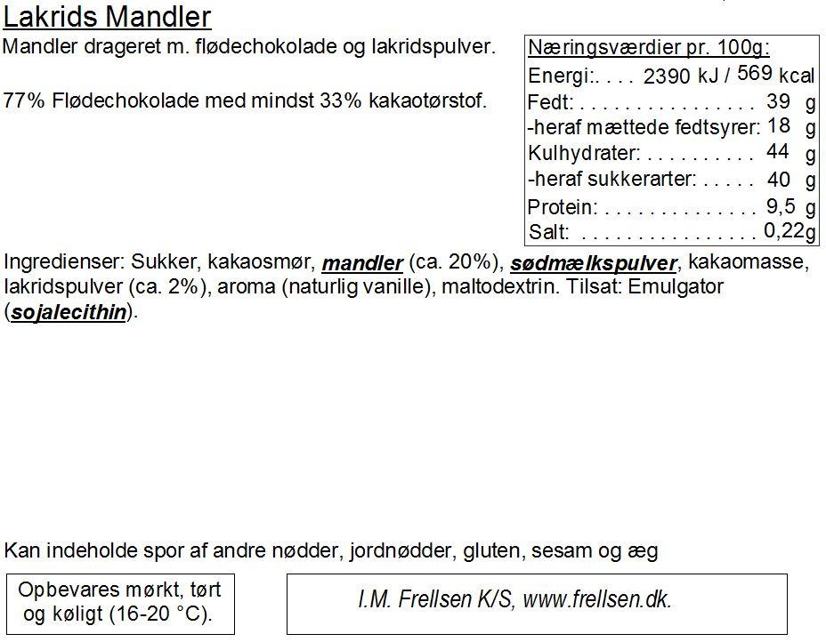 Gaveæske med assorterede mandler. Hver æske indeholder 80g Mandler drageret med flødechokolade, mørk chokolade og hvid chokolade, 80g Mandler drageret med flødechokolade og hindbærpulver, 80g Mandler drageret med flødechokolade og kakaopulver samt 80g Mandler drageret med flødechokolade og lakridspulver.